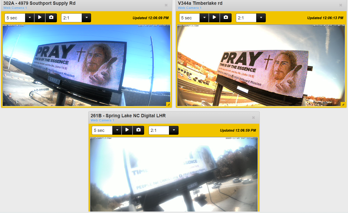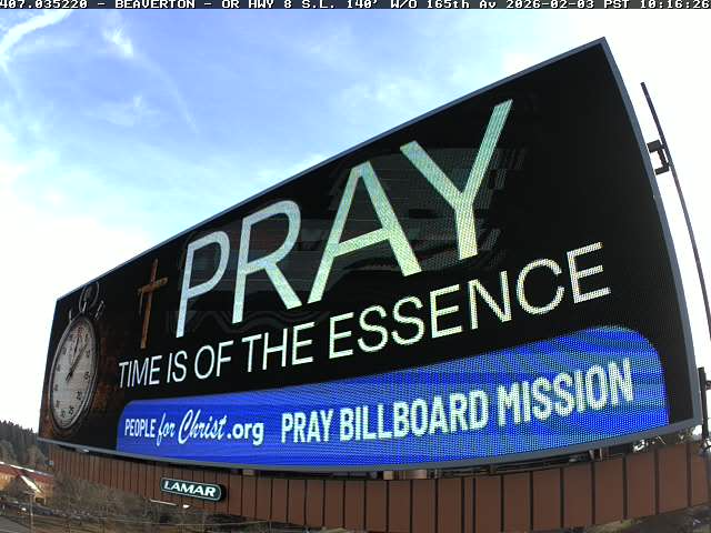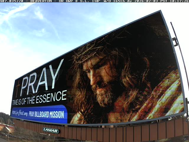 Our Heavenly Father said to place PRAY Billboards in cities and towns across our great nation and beyond. We believe each billboard that goes up acts as a candle, the light of which the HOLY SPIRIT will use for HIS purposes to the travelers who pass by. We also believe that if other Christians will join us in support of this Mission, together as the Body of CHRIST, we can light up America with HIS message. To that end, we are looking for partners to place as many billboards as we can, so that HIS light shines out to bring salvation to the lost in these turbulent times. To listen to our most recent billboard placement testimony in the video below. If you would like to sponsor a billboard in your community please contact us or donate to help expose millions more to the LORD'S message.